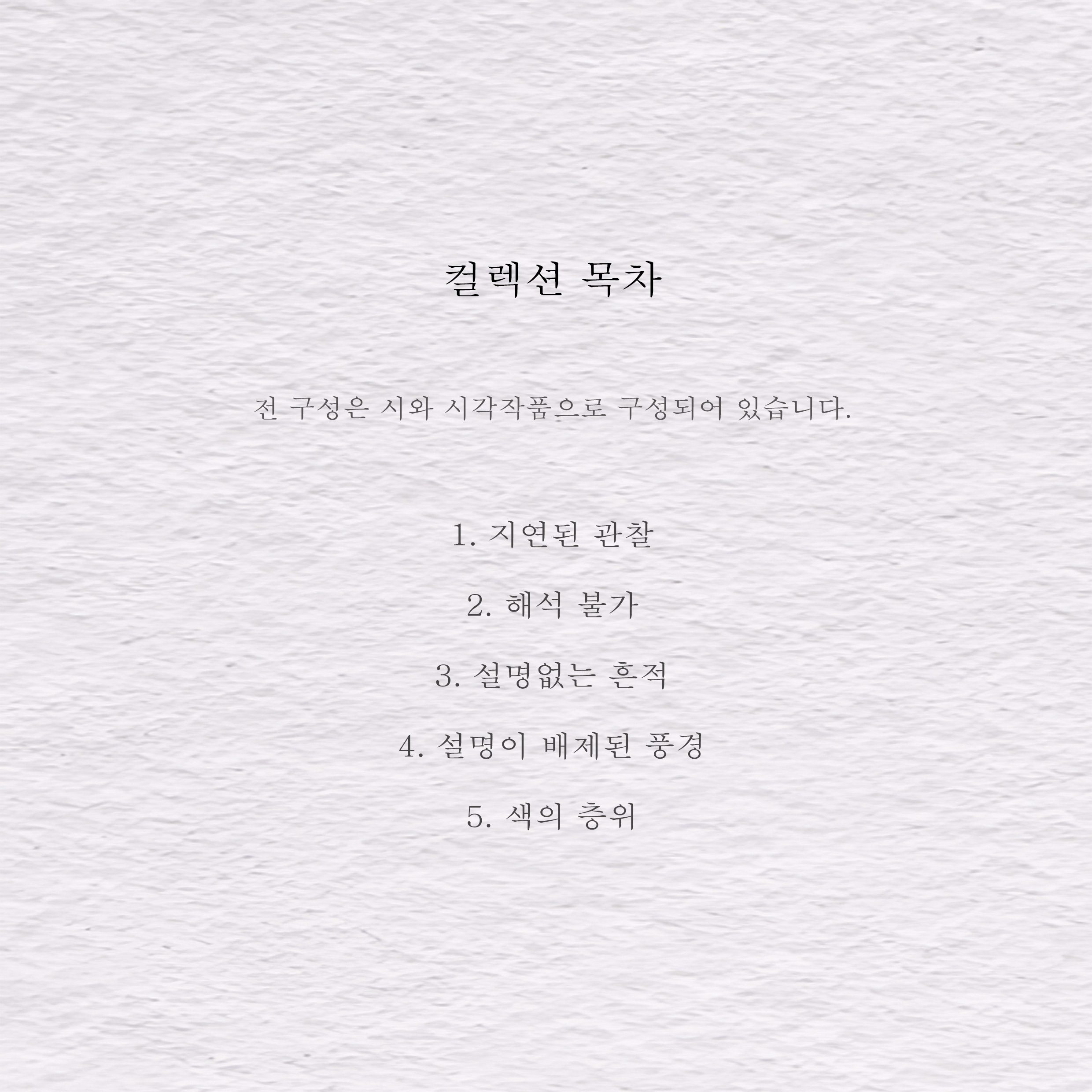 다섯 가지 주제를 중심으로 한 시와 고화질 그림이 수록되어 있습니다.