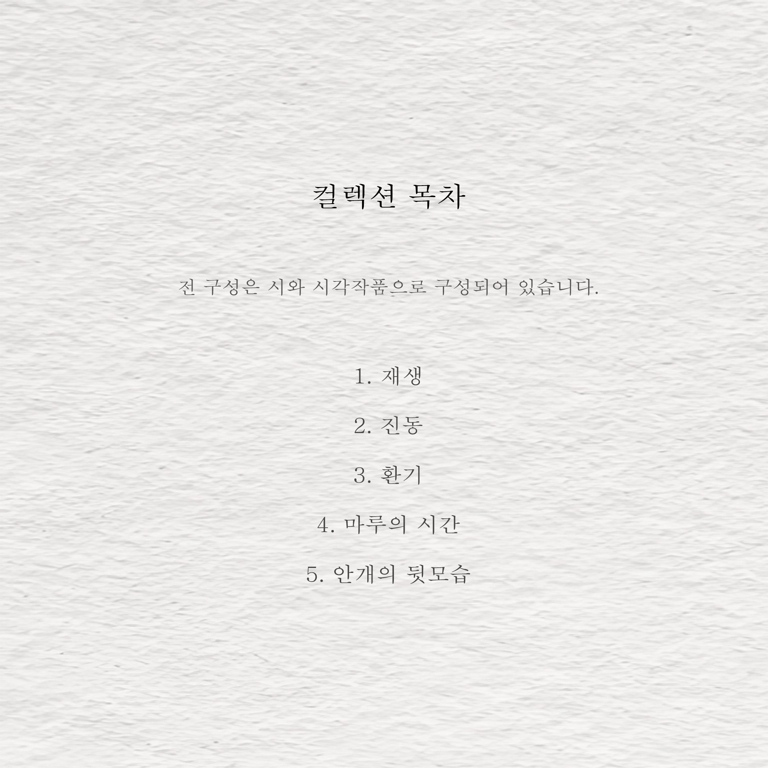 다섯 가지 주제를 중심으로 한 시와 그림이 수록되어 있습니다.