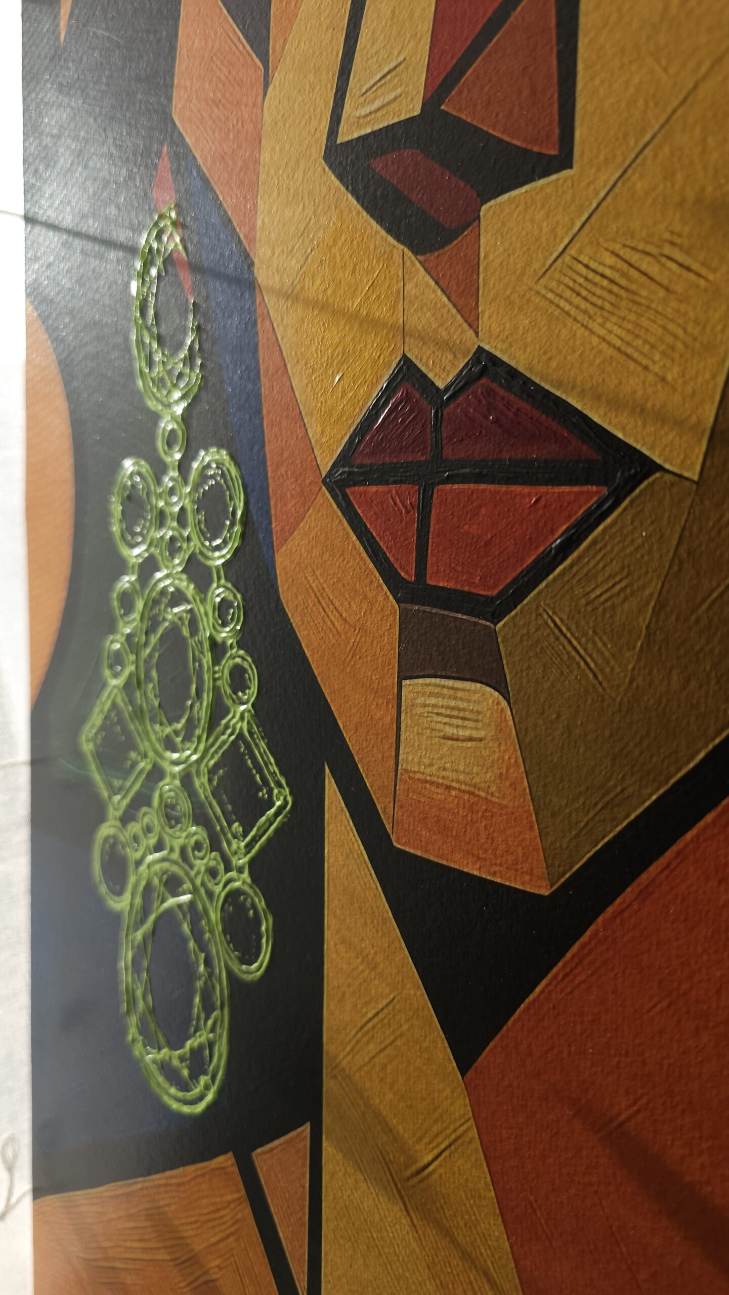 The figure and background are generated through an AI-based process, symbolizing how individuality becomes diluted in a society where human value is often reduced to functionality and interchangeability. In contrast, the jewelry elements are hand-painted to represent the irreplaceable authenticity that defines our true essence.