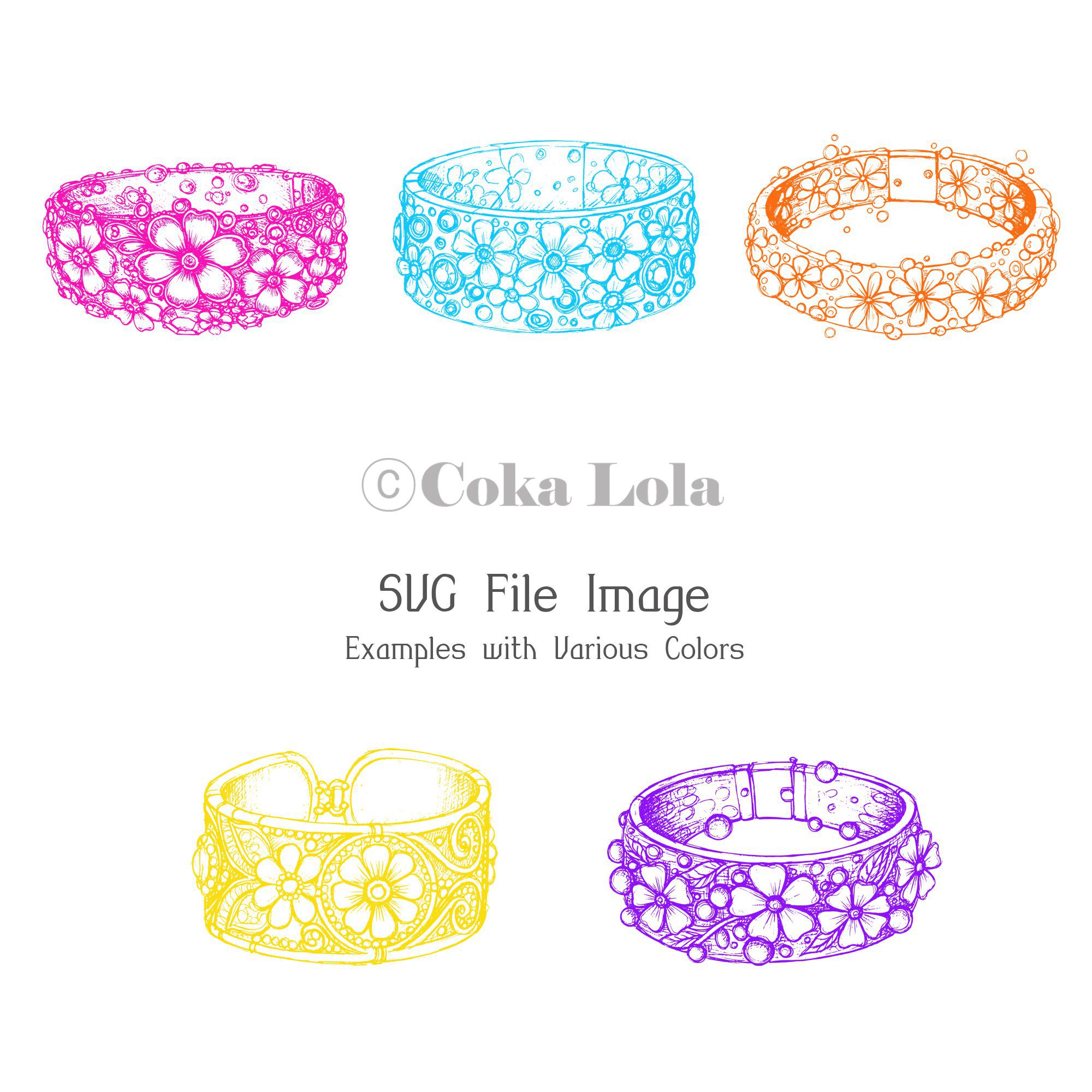 Bring timeless elegance to your creative projects with this Floral Bracelet 5pcs Set — a collection of meticulously hand-drawn bracelet illustrations in PNG & SVG formats.