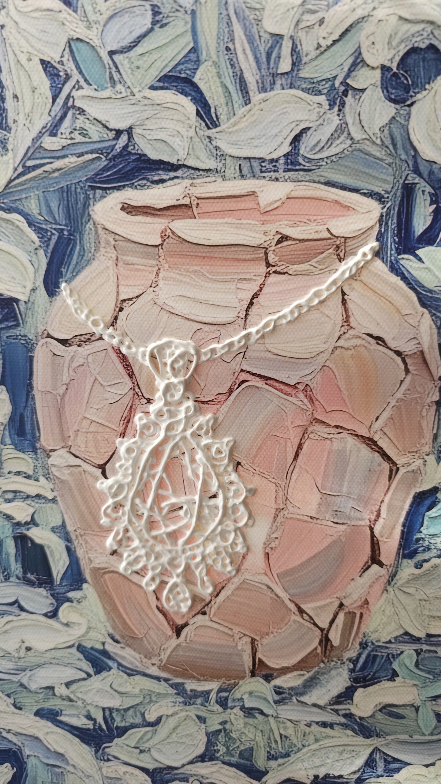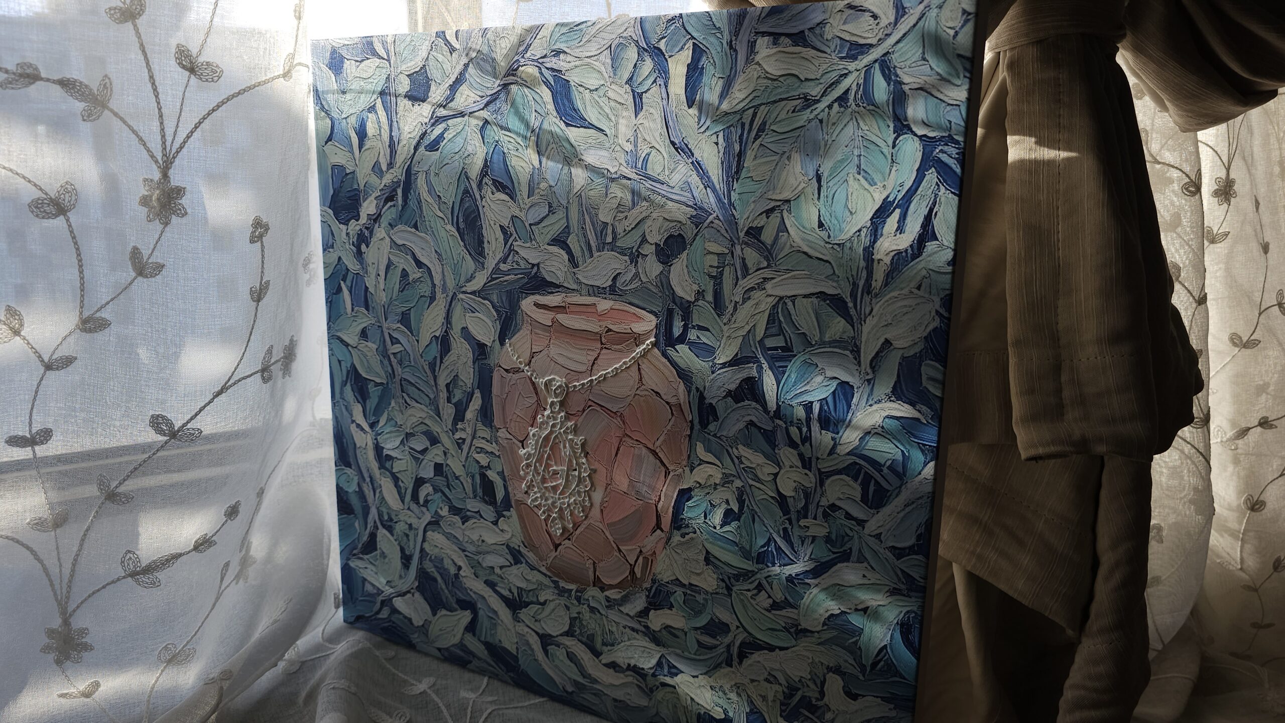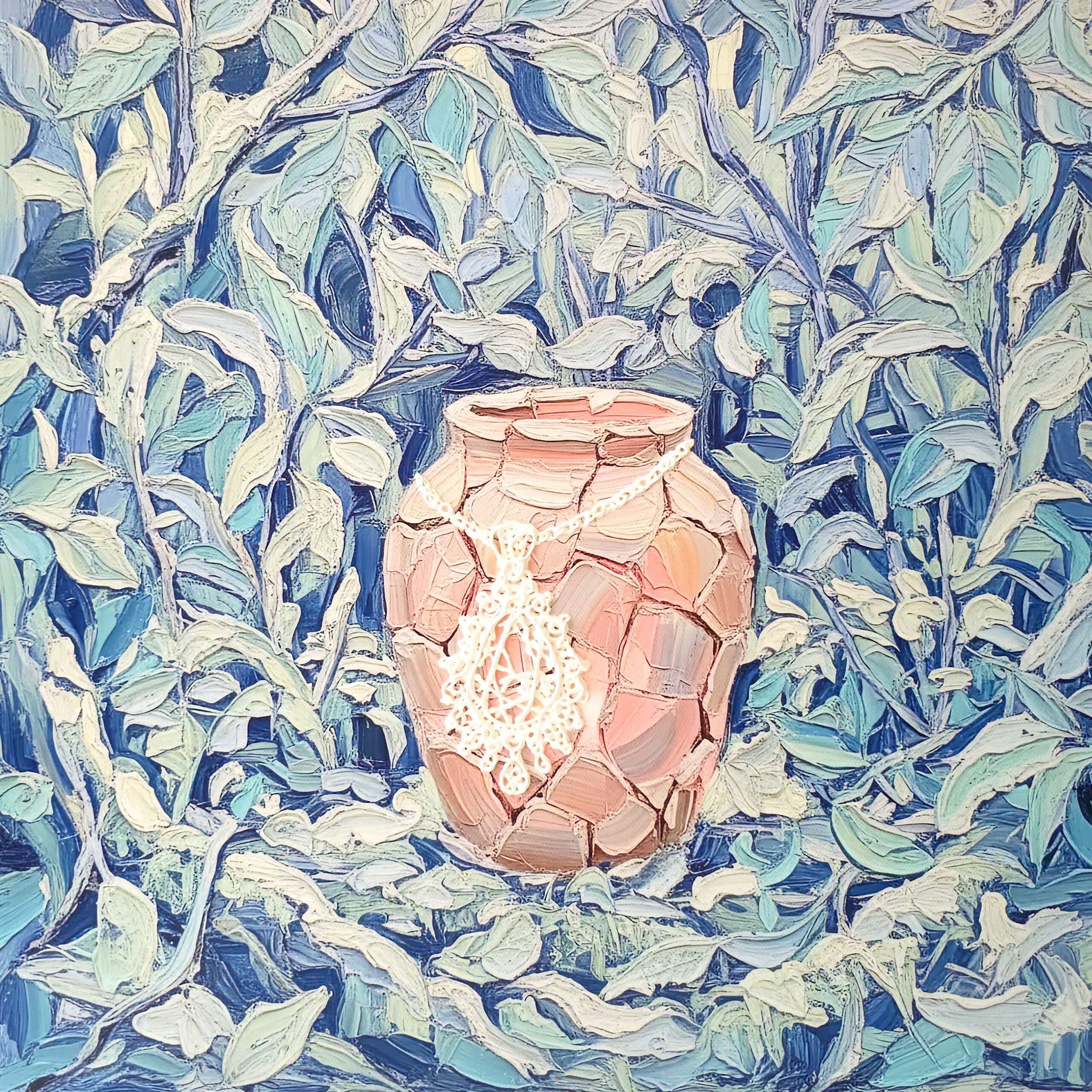 The jar represents a wounded heart shaped by such exposure, with cracks and traces marking moments where emotion has passed and endured.