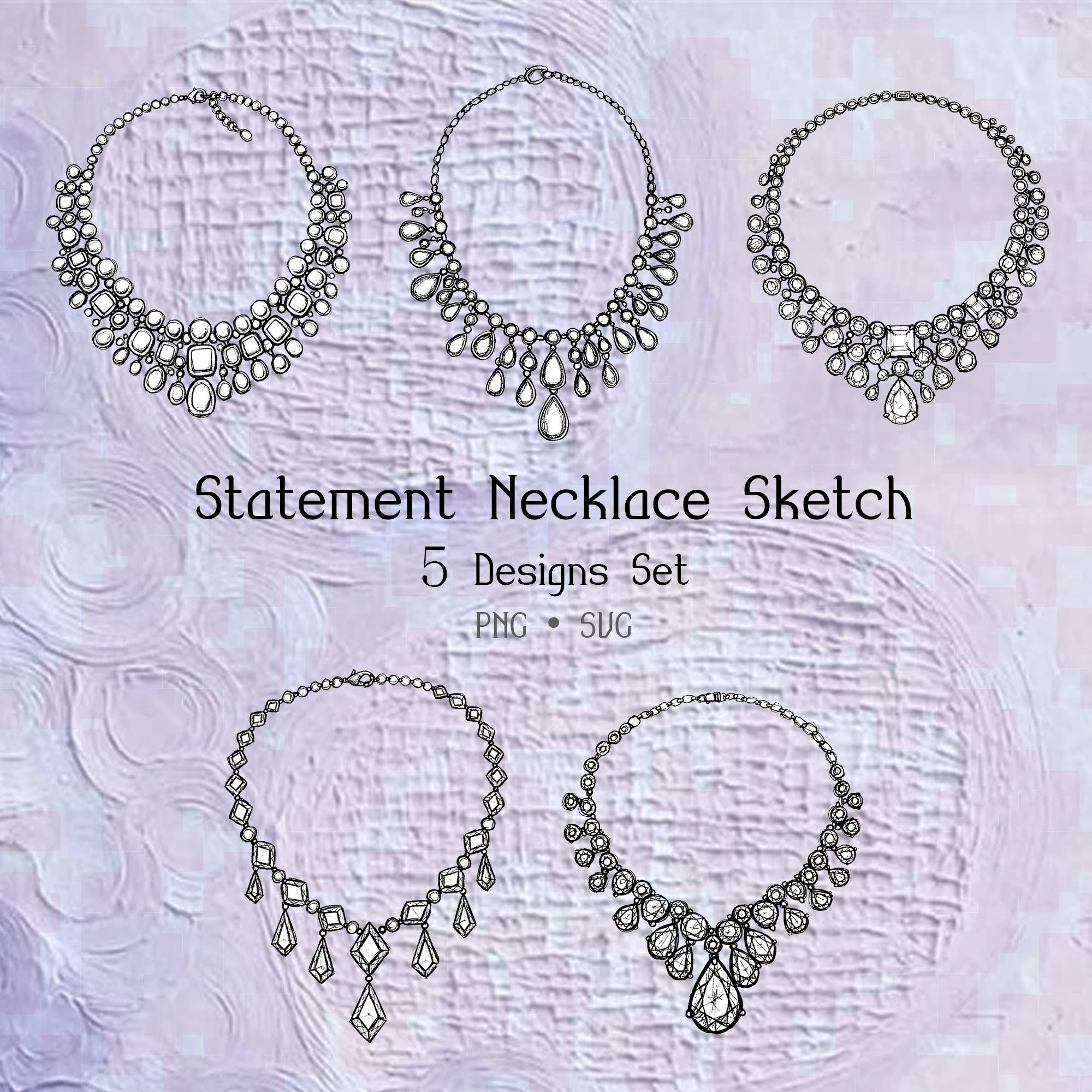 A premium collection of 5 statement necklace design sketches, perfect for jewelry designers, fashion illustrators, and digital creators who want to create standout statement pieces.
